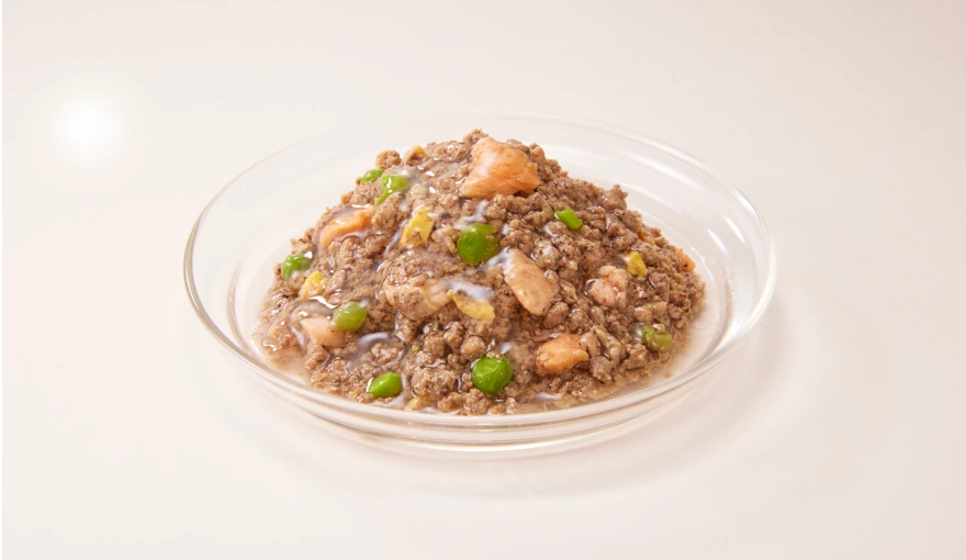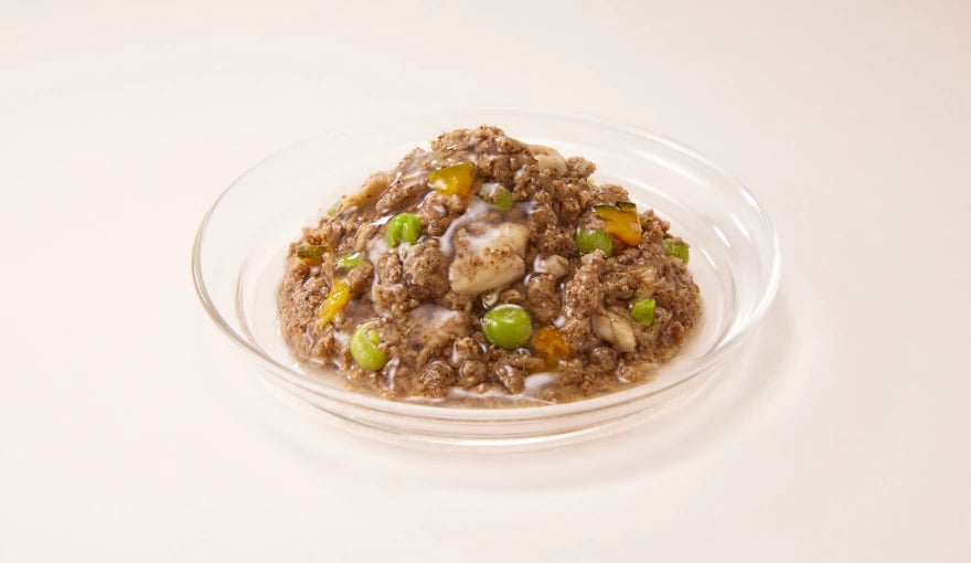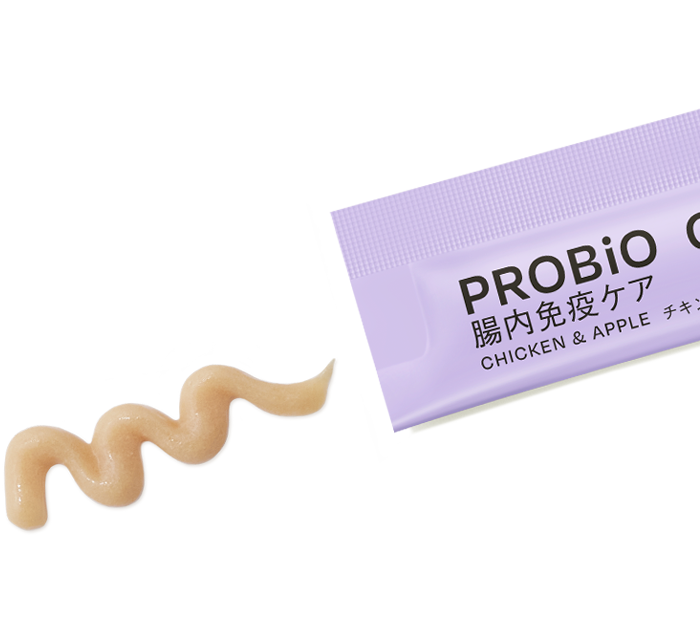 鶏肉(胸肉、レバー、ハツ)、米粉、りんごピューレ、ホタテエキス粉末、チキンエキス、はちみつ、フラクトオリゴ糖、フィッシュオイル、乳酸菌(シールド乳酸菌®︎)、有胞子性乳酸菌、乳酸菌(ビフィズス菌)、寒天