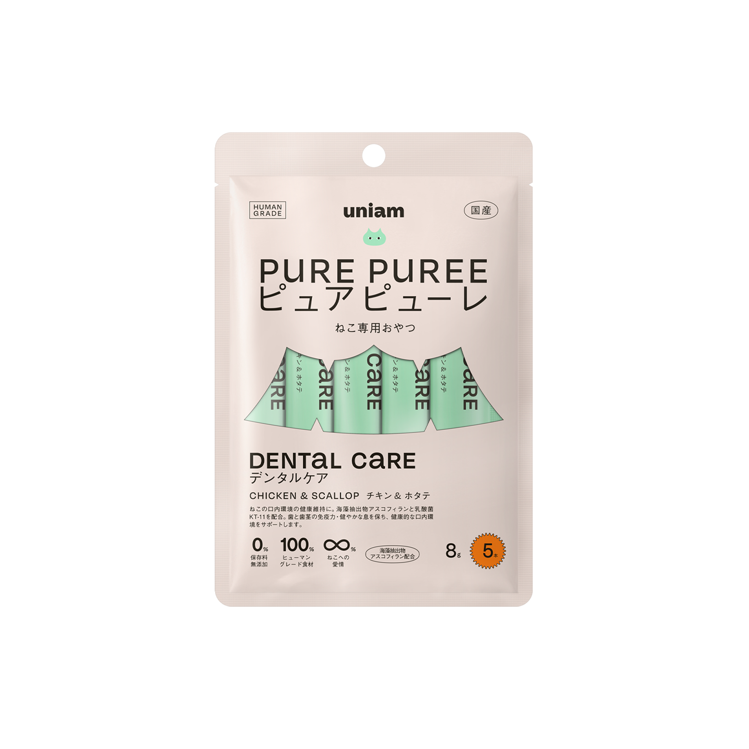 鶏肉、米粉、チキンエキス、鶏ハツ、鶏レバー、ほたてエキス粉末、海藻抽出物アスコフィラン、寒天、デキストリン、殺菌乳酸菌粉末(クリスパタス菌KT-11株)