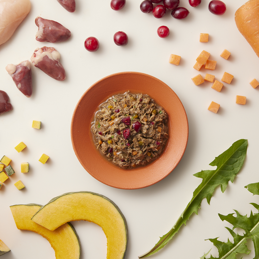 低リン設計で腎臓の負担に配慮しつつ、良質なたんぱく源である卵白を配合。 ダンデライオンとクコの実によって腎臓と泌尿器の健康維持をサポートします。 さらに、かぼちゃやにんじんの自然な食物繊維が腸内環境を整え、 日々の健康を内側から支えます。